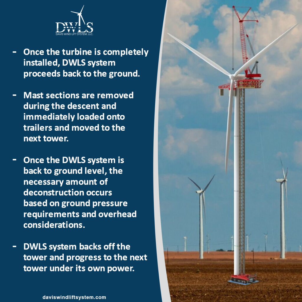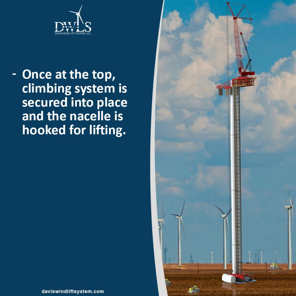 The Davis Wind Lift System is safer, can go higher, and is a less costly method than a conventional large crane to performing all the top out lifts.